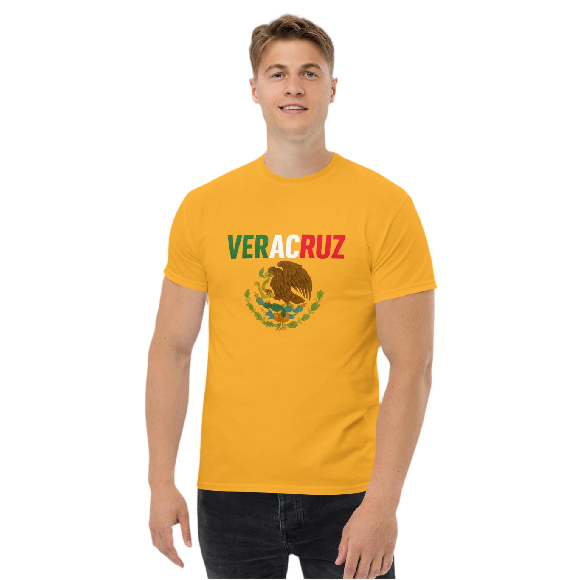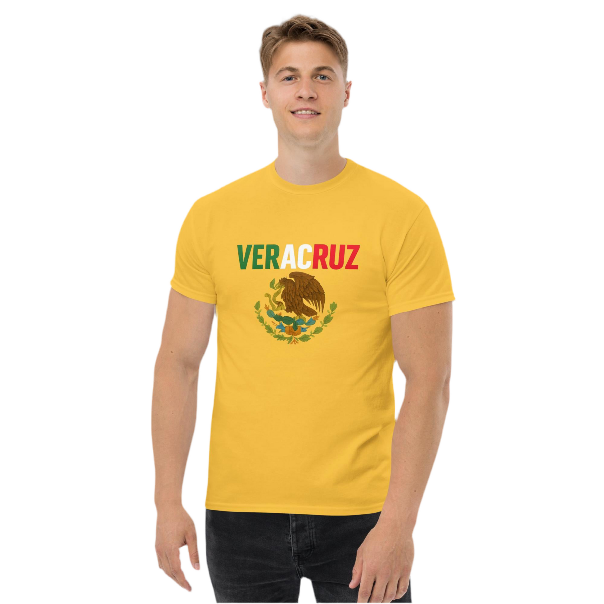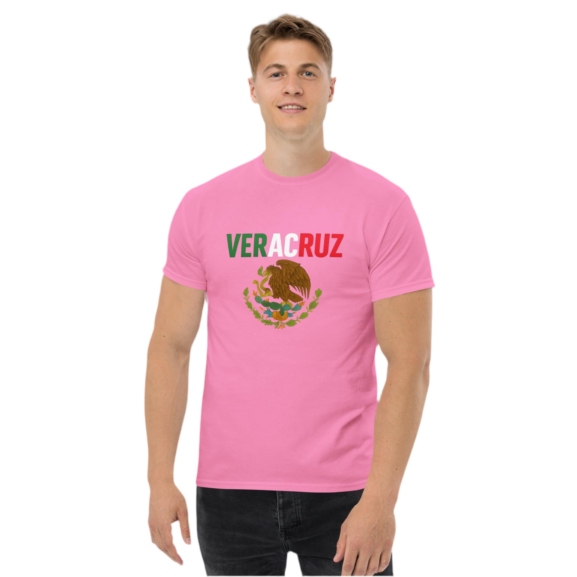Show your love for Veracruz with this striking cultural tee! Designed with Veracruz in bold letters inspired by the colors of the Mexican flag and paired with the national emblem, this shirt proudly honors one of Mexico’s most vibrant and historic states. Whether you're from Veracruz or simply connected to its rich traditions, this shirt is made to wear your pride out loud.