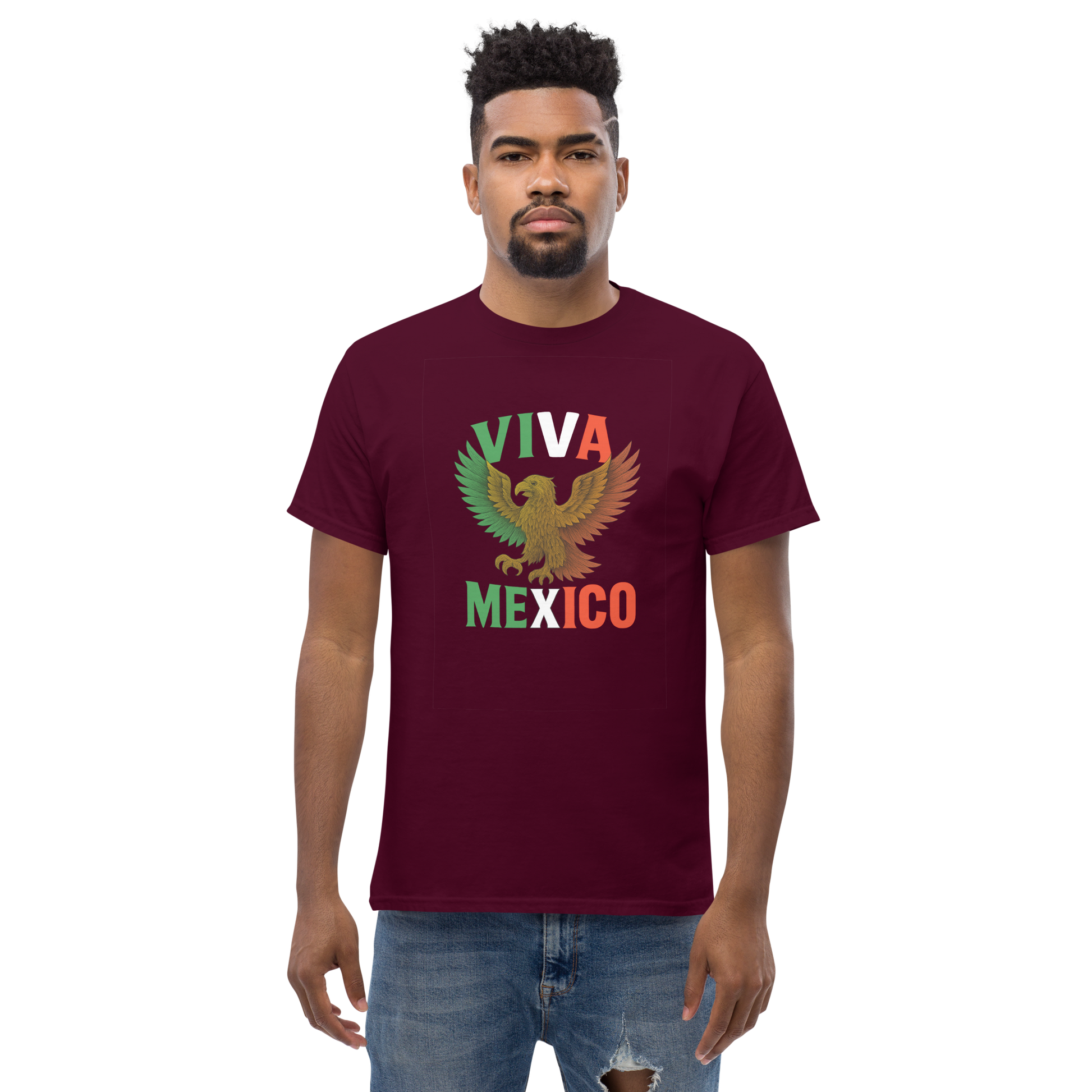 Let your pride soar with this fierce Viva México tee, featuring a striking golden eagle mid-flight over the tricolor flag. Designed with bold vintage texture and the powerful colors of verde, blanco y rojo, this shirt isn’t just about fashion it’s a full-on celebration of heritage, strength, and corazón mexicano. Wear it loud, wear it proud porque México no se explica, se siente. 🦅🔥
